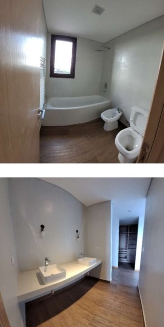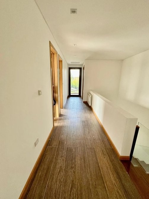 La planta alta alberga los ambientes privados: dormitorio principal en suite con vestidor, dos dormitorios secundarios y baño completo, todos vinculados por una circulación luminosa y un balcón corrido que extiende los espacios hacia el exterior, reforzando la conexión con el paisaje.